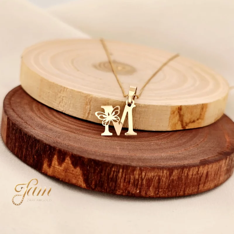 پلاک طلا حرف لیزری M با شاپرک کد P7638