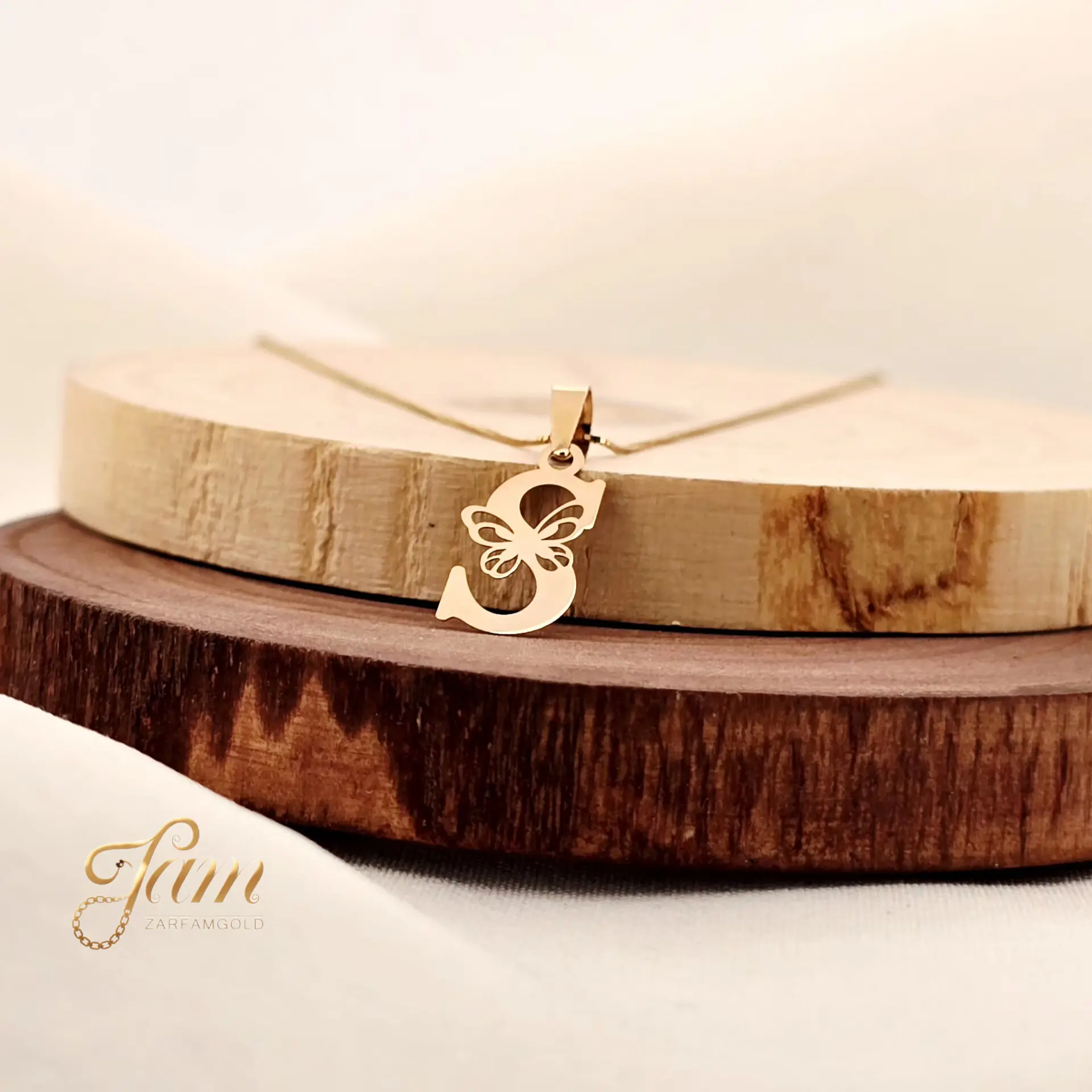 پلاک طلا حرف لیزری S با شاپرک کد P7642