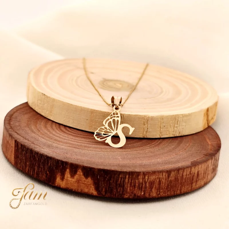 پلاک طلا حرف لیزری S با پروانه نیمه کد P7646
