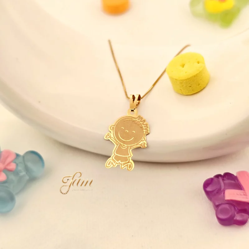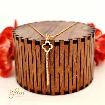 پلاک طلا ونکلیف تو خالی با آویز زنجیر کد P6887