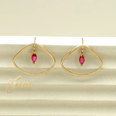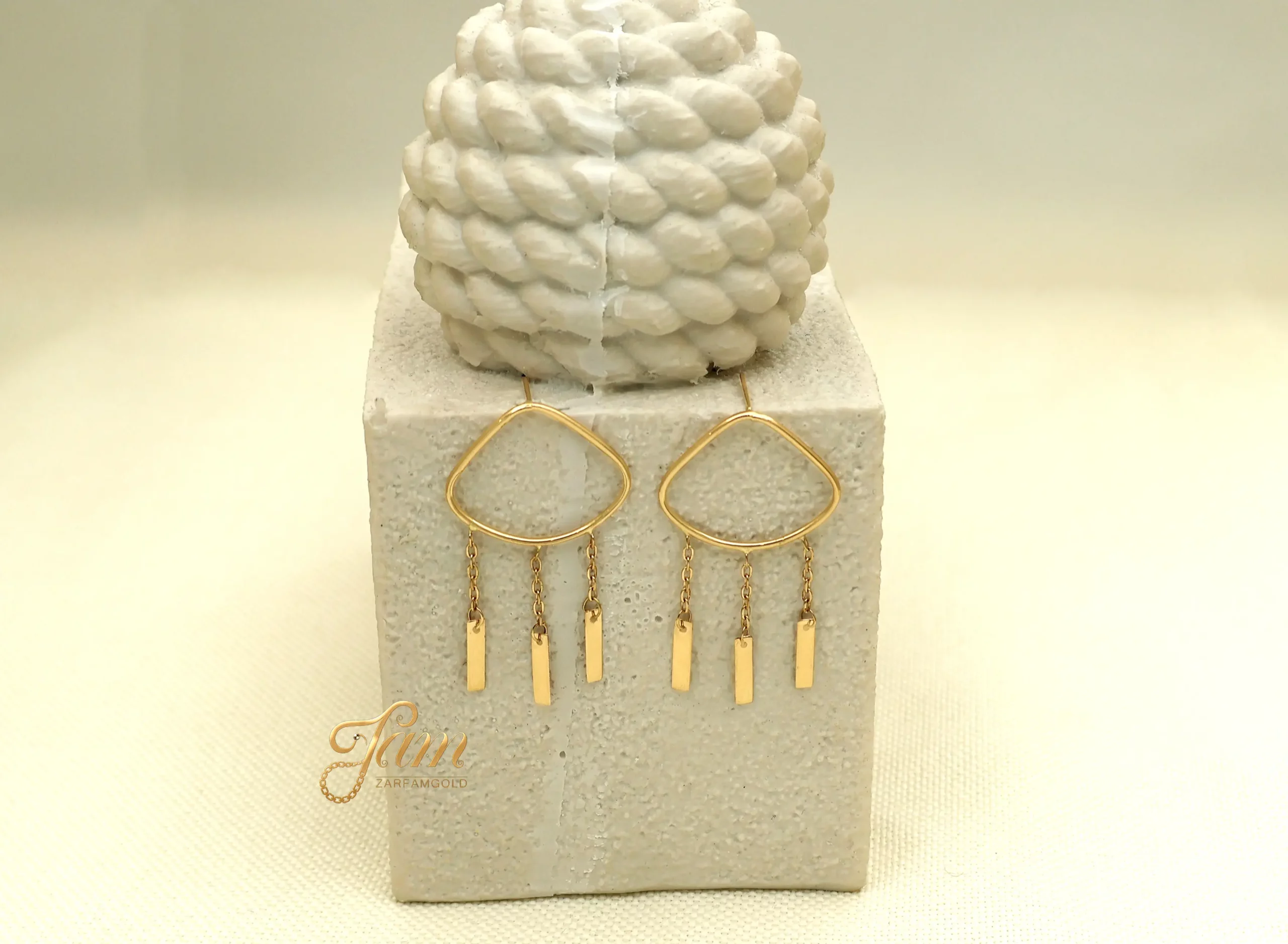 گوشواره طلا لوکس لوزی با سه زنجیر و ملیله کد E5313