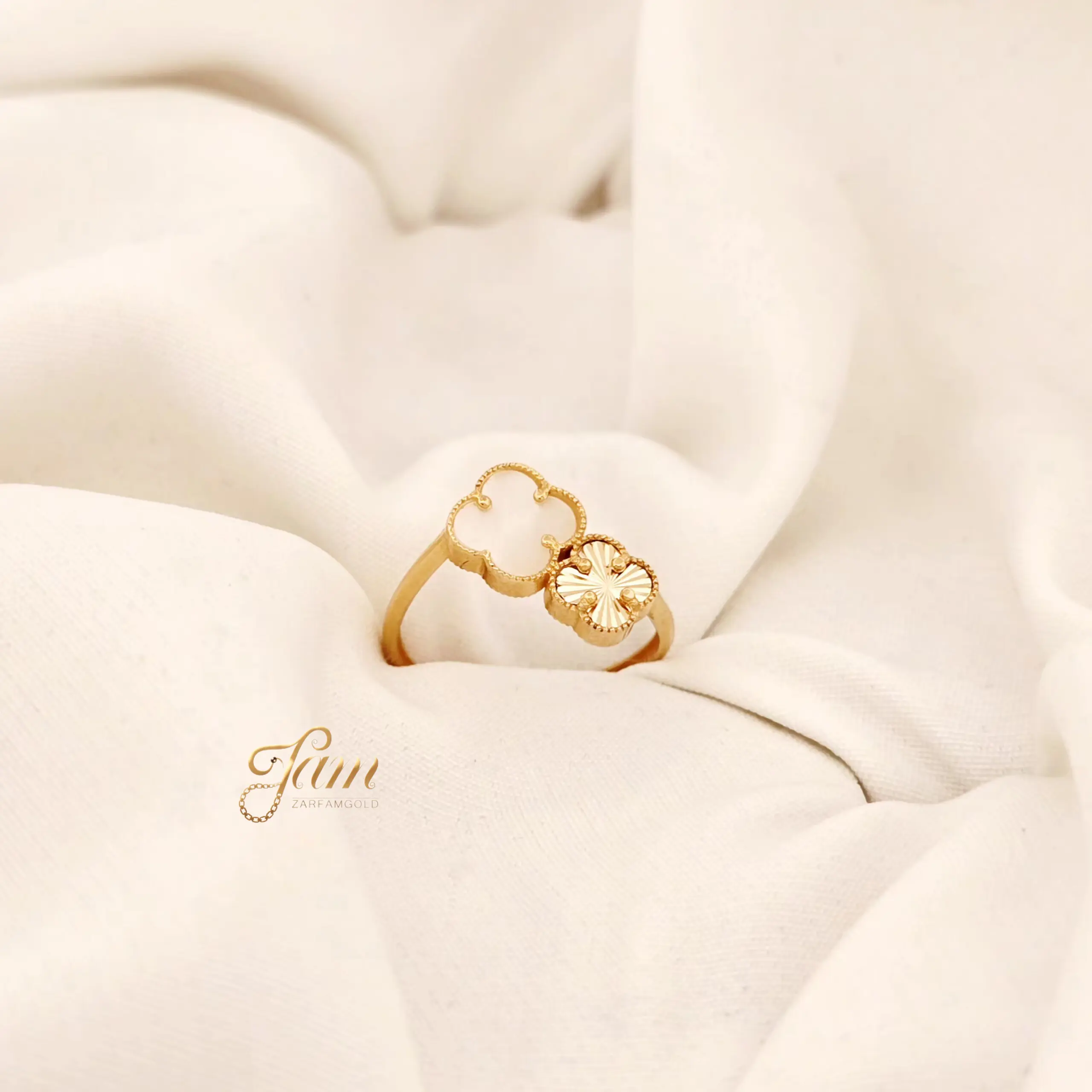 انگشتر طلا دو برگ ظریف دو طرفه مینیمال کد R3561