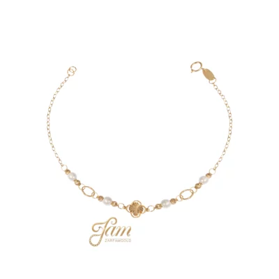 دستبند طلا زنجیری مروارید و البر و تک ونکلیف کد B4561