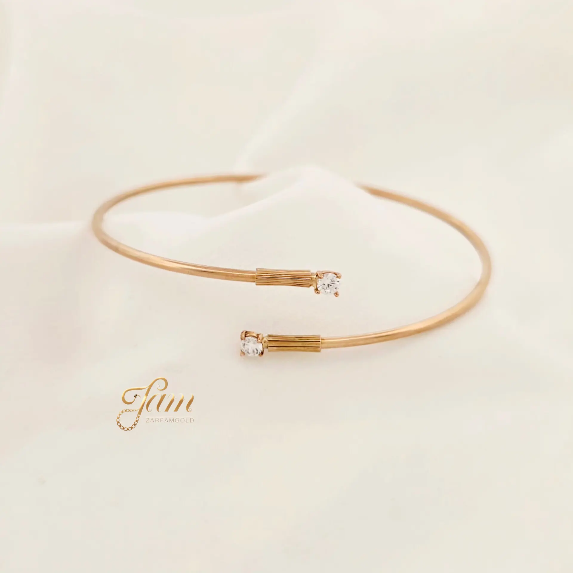 دستبند طلا بنگل با نگین سفید کد B6388