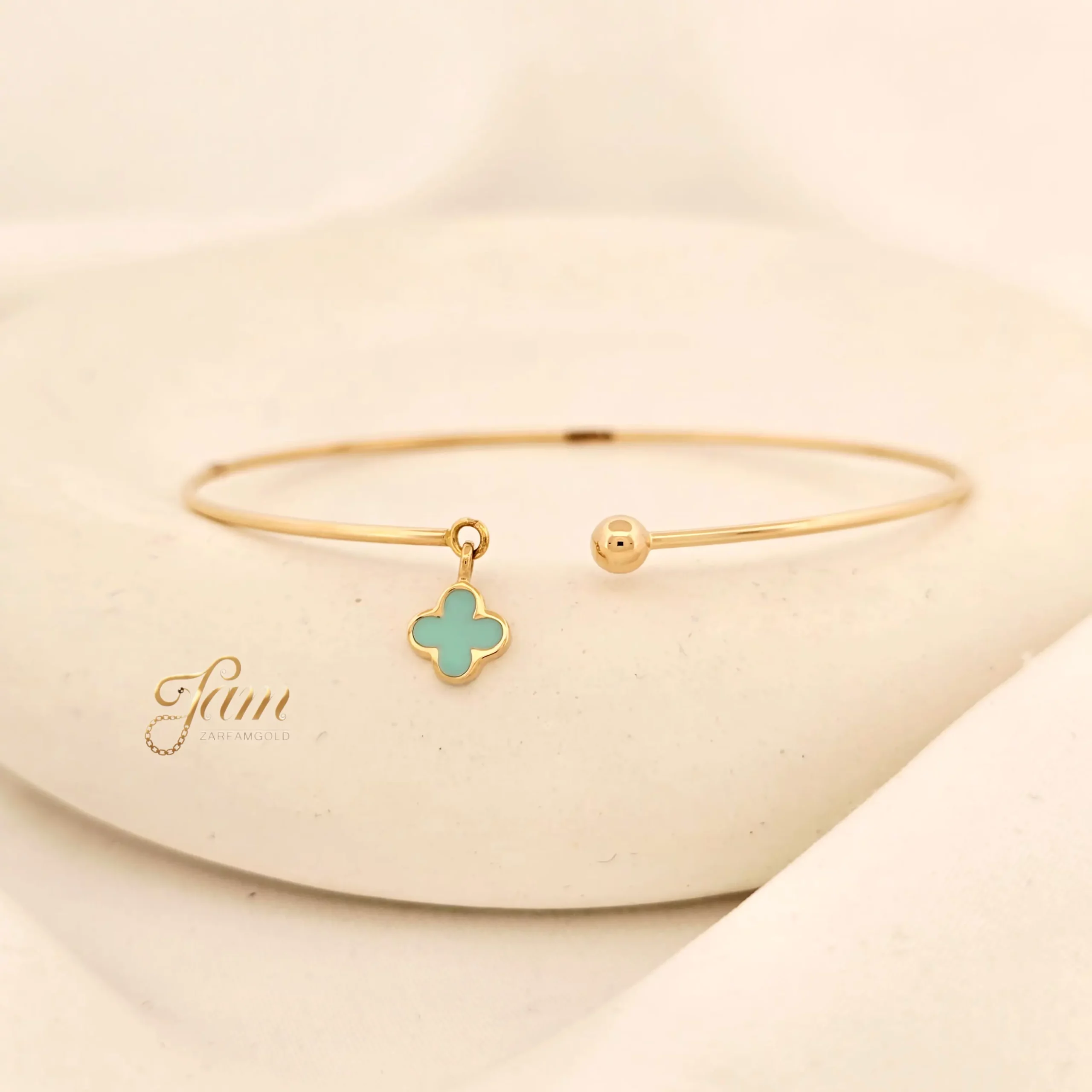 دستبند طلا بنگل ونکلیف آبی و گوی کد B7226