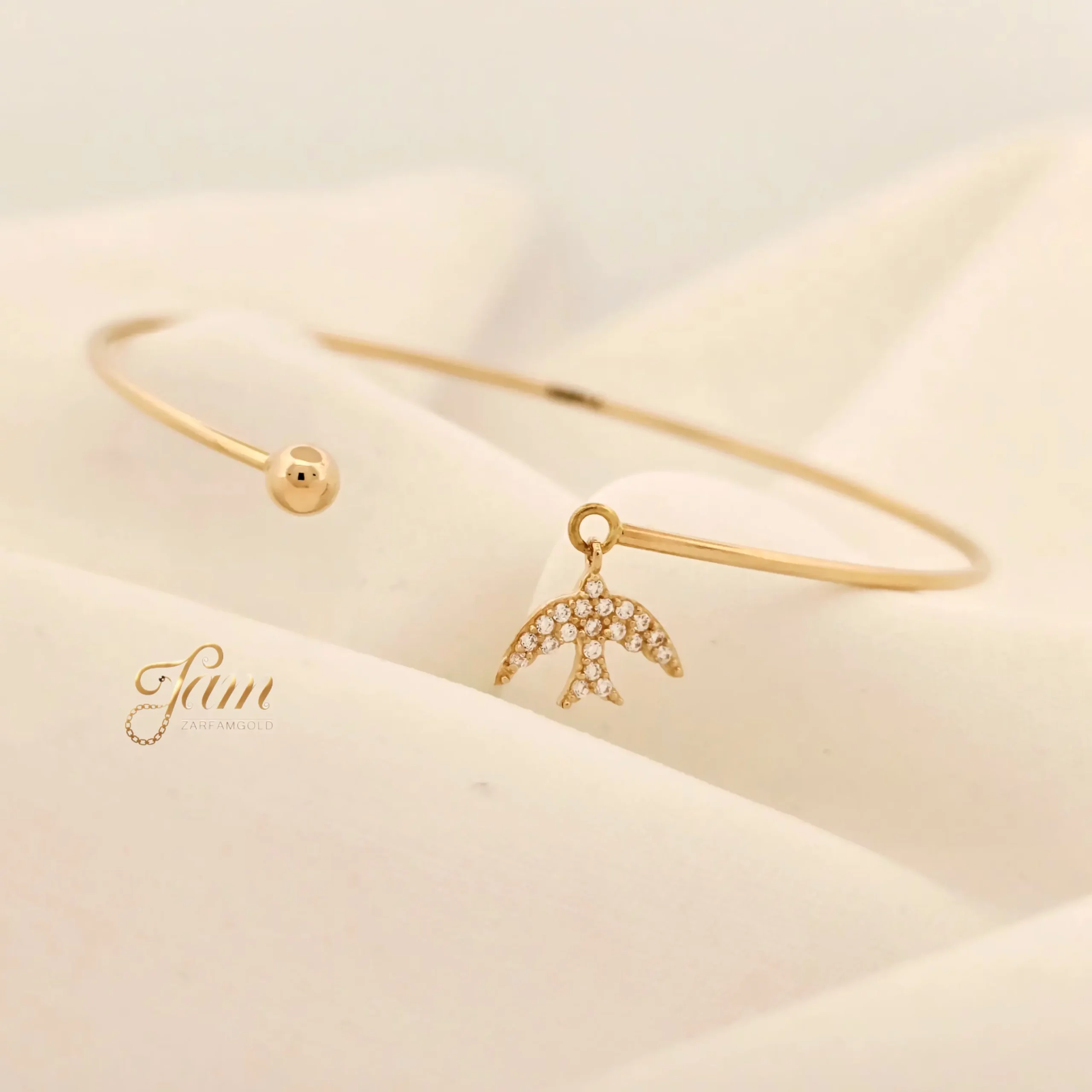 دستبند طلا بنگل پرستو نگینی و گوی کد B7227