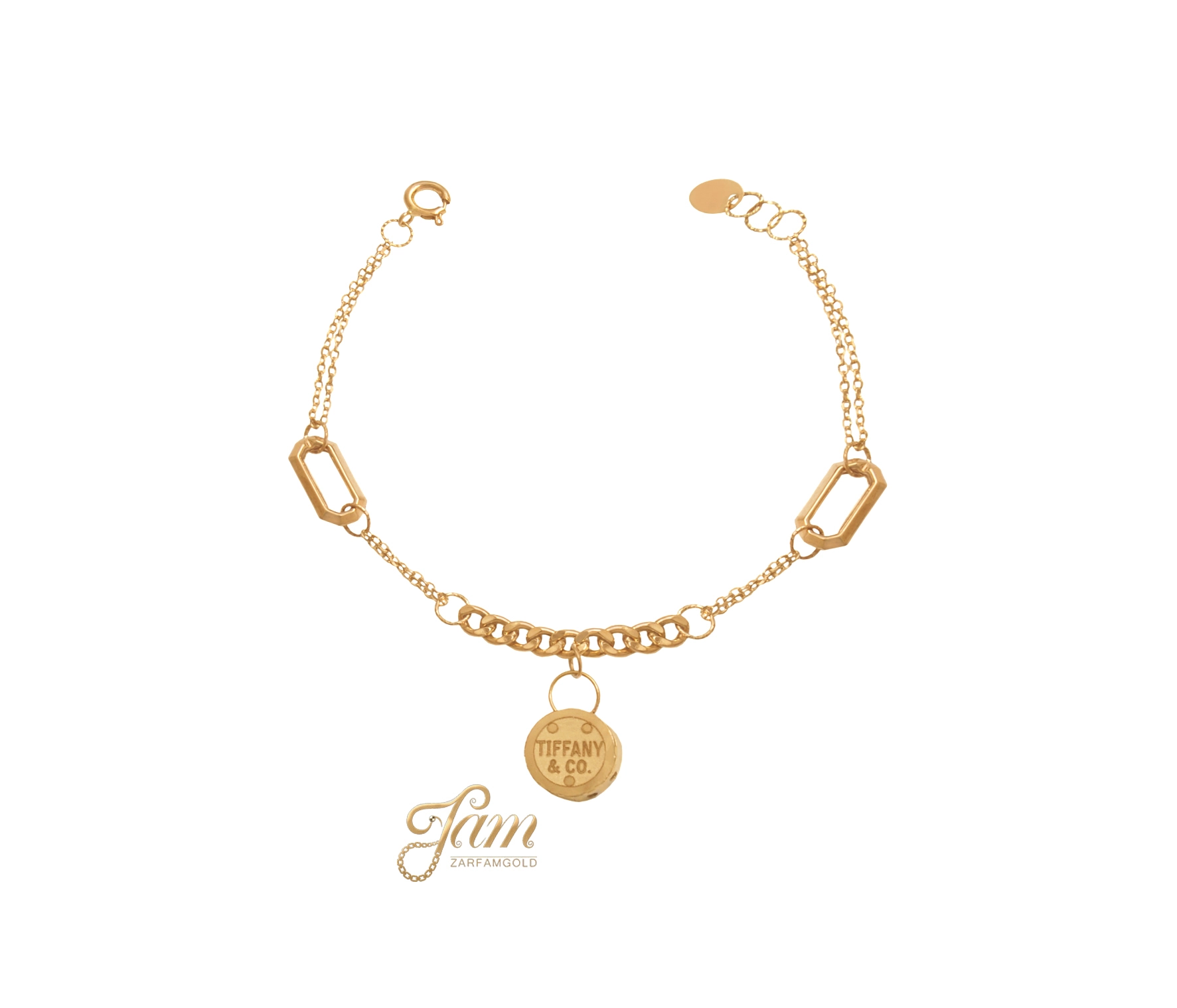 دستبند طلا تک کارتیر و شش ضلعی کشیده با آویز تیفانی گرد کد B4741