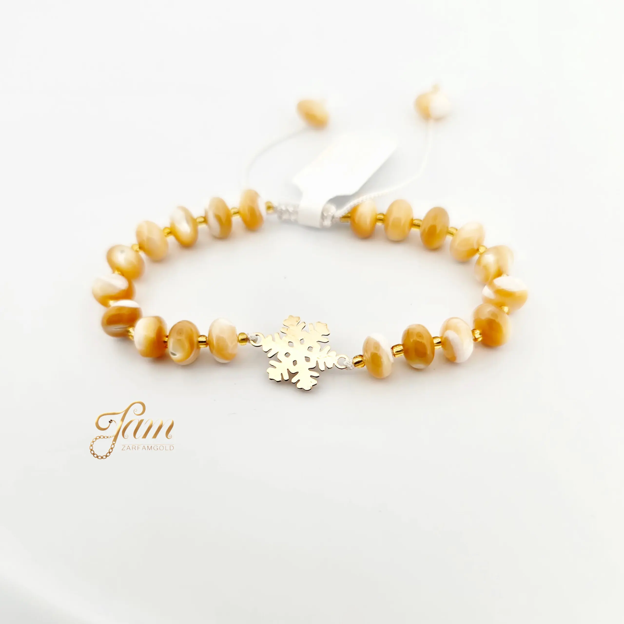 دستبند طلا دانه برفی با بند صدفی کد BL6662