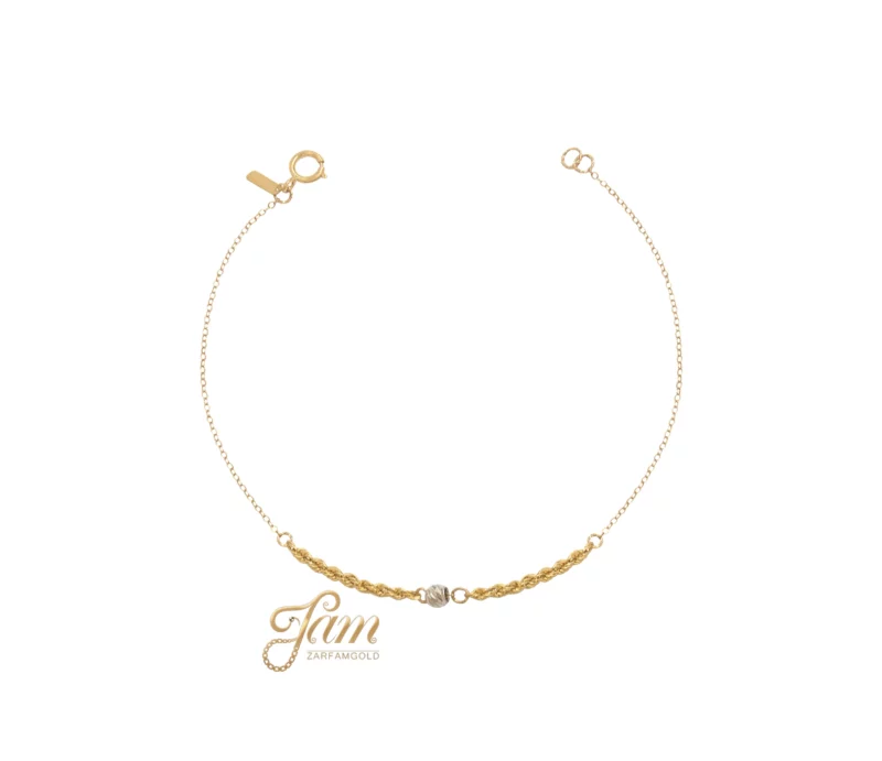 دستبند طلا دو تکه طنابی و تک گوی سفید ایتالیایی کد B7516