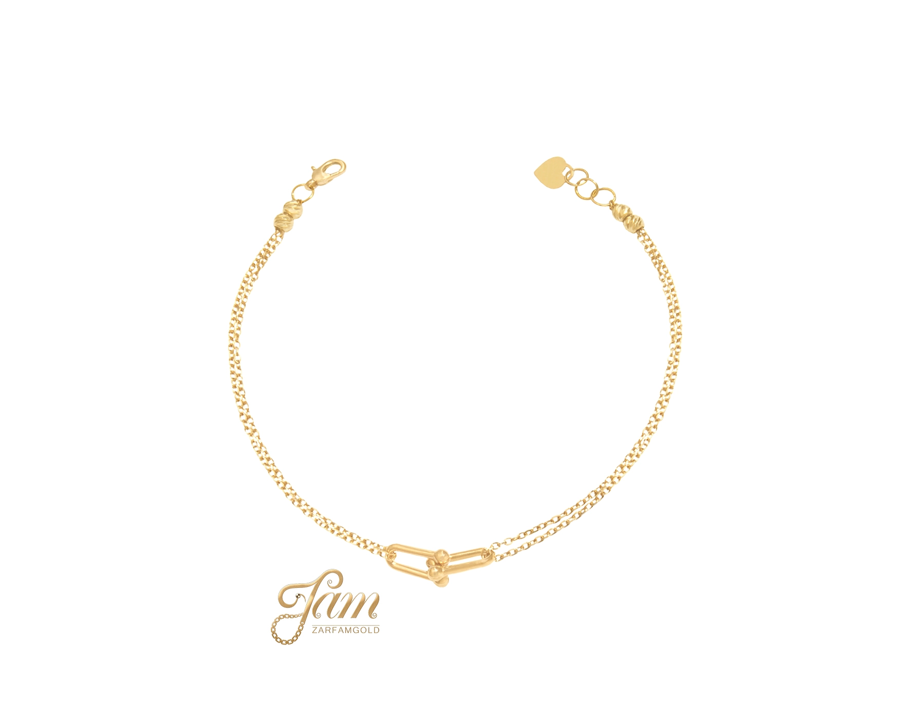 دستبند طلا دو رنگ البر و هرمس و دو گل در حلقه کد B5525