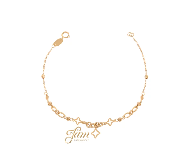 دستبند طلا هرمس و زنجیر با سه ستاره آویز کد B7501