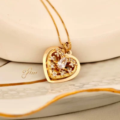 پلاک طلا نگین اشکی قلب سواروسکی کد P6711