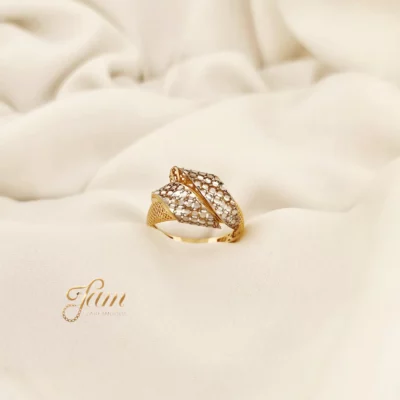 انگشتر طلا توری و تراش دو رنگ چپ و راستی کد R7933