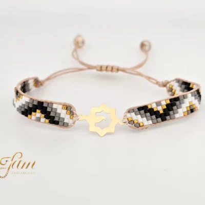 دستبند طلا میوکی پرنده در ستاره با بند سفید طوسی کد BL7157