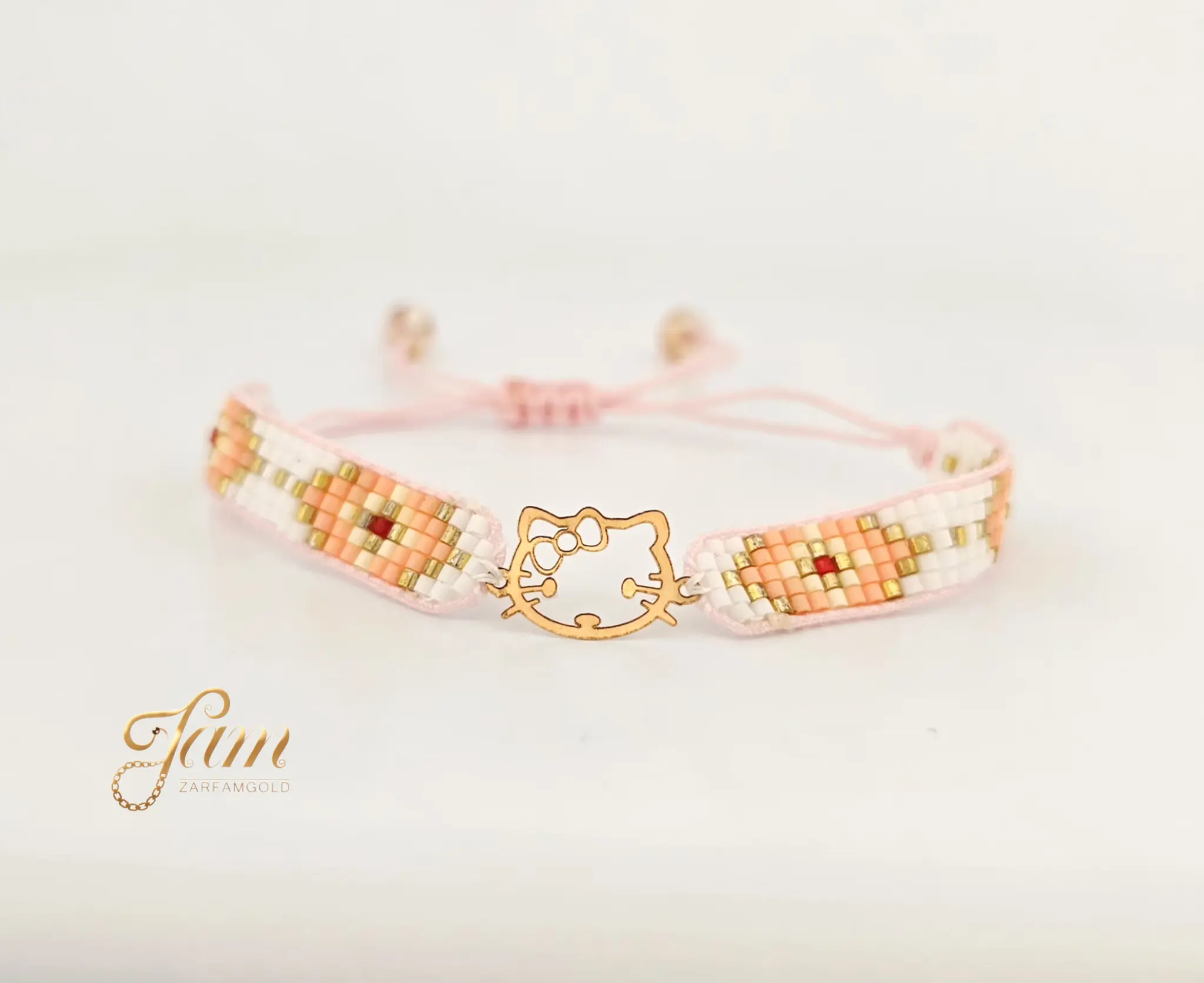 دستبند طلا میوکی کیتی با بند گلبهی سفید کد BL7156