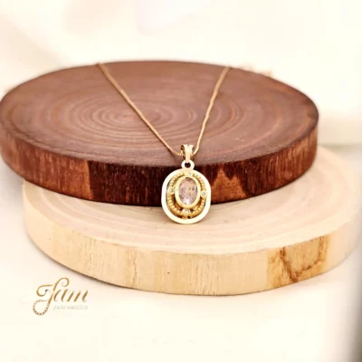 پلاک طلا تک نگین ظریف صورتی کد P7804