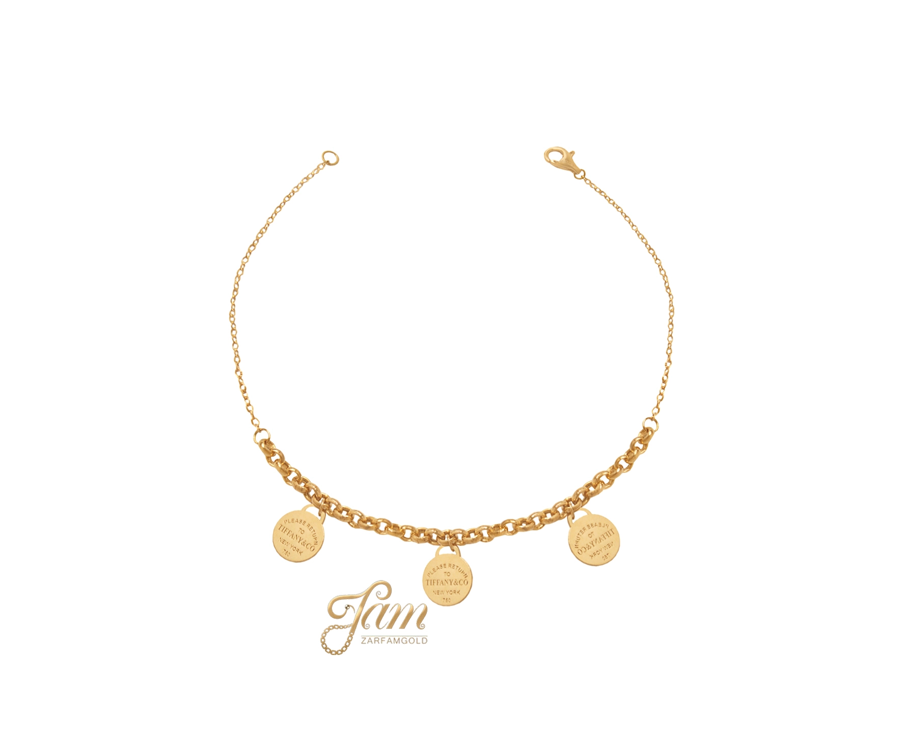 دستبند طلا هرمس با آویز 3 تیفانی گرد کد B4551