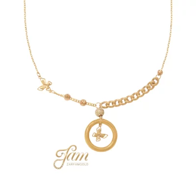 گردنبند طلا گوی و کارتیر با آویز پروانه تراش در حلقه کد NP4533