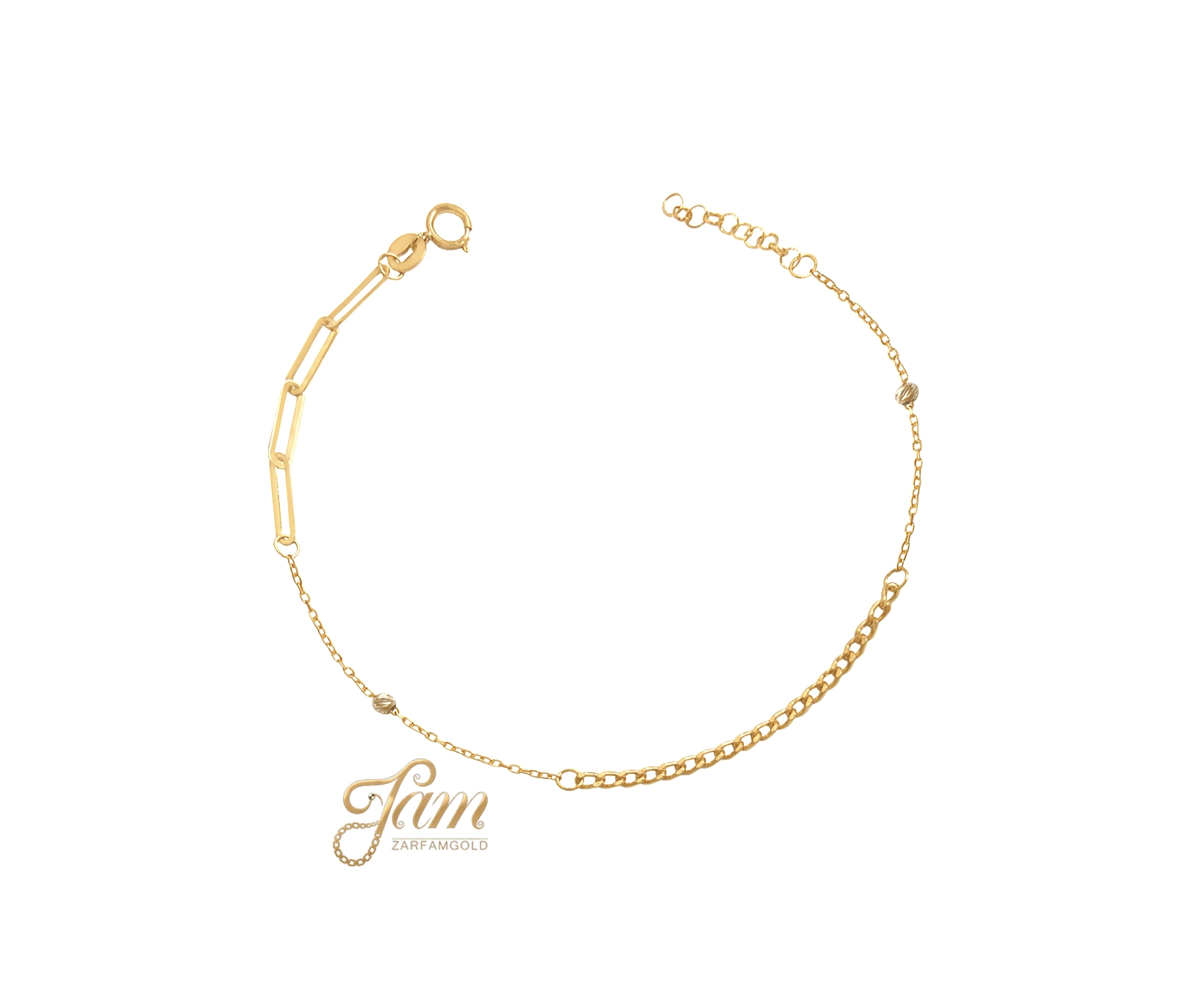 دستبند طلا کارتیر زنجیری با آویز دو قلب کد B6568