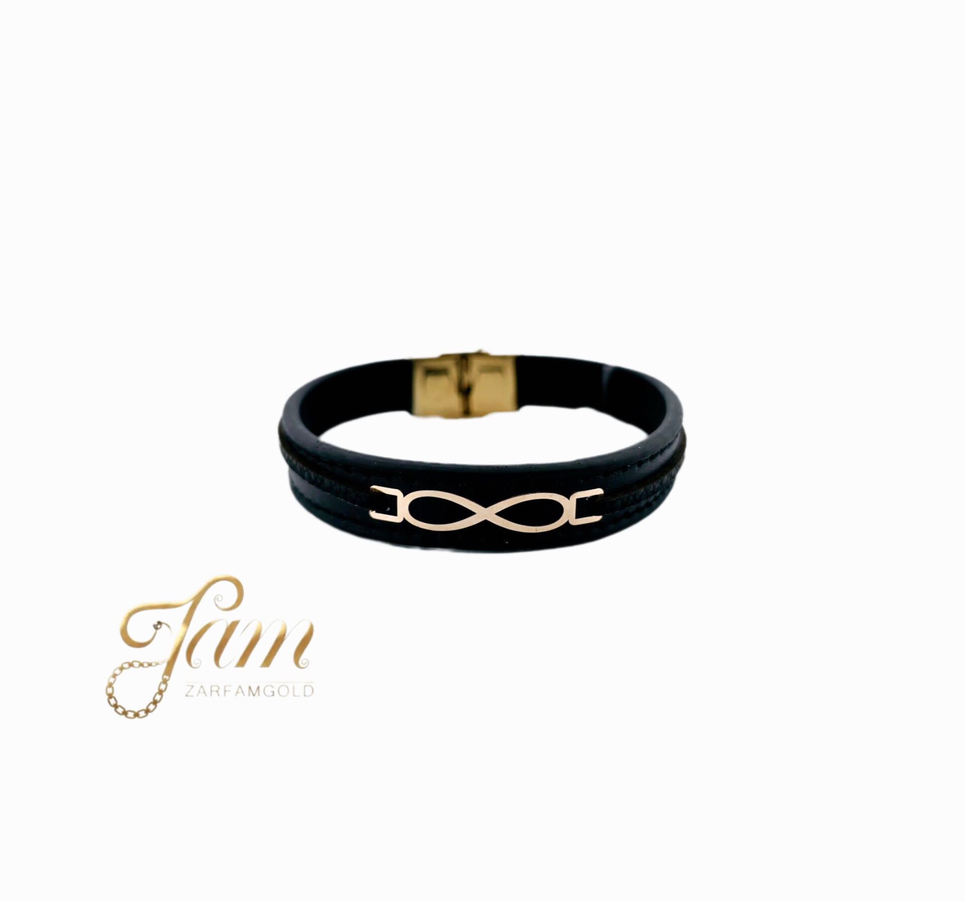دستبند طلا چرم مردانه بی نهایت با بند مشکی کد BL5389
