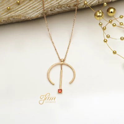 گردنبند طلا لوکس هلالی با آویز نگین قرمز کم رنگ کد NP5318