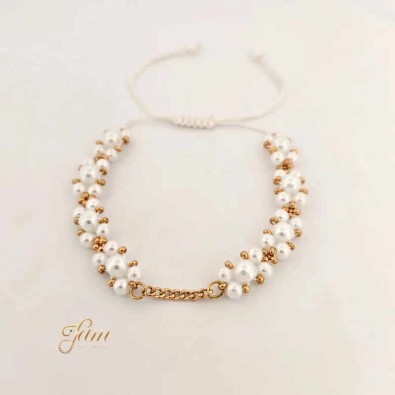 دستبند طلا کارتیر ظریف با بند مروارید و گوی طلایی کد BL7262