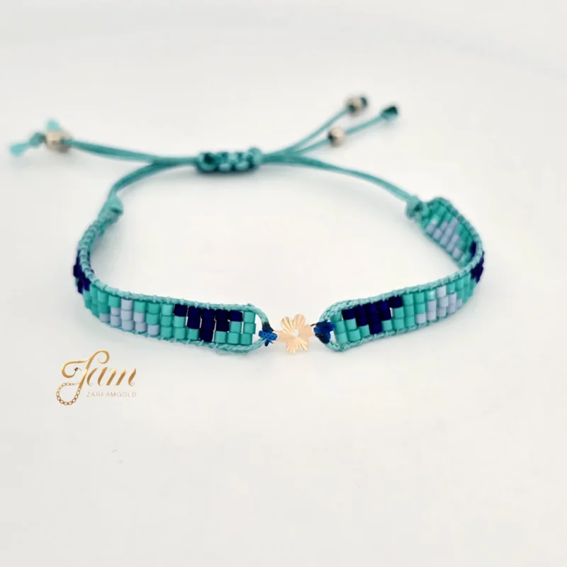 دستبند طلا لوزی تراش با بند میوکی سبز فسفری کد BL7835
