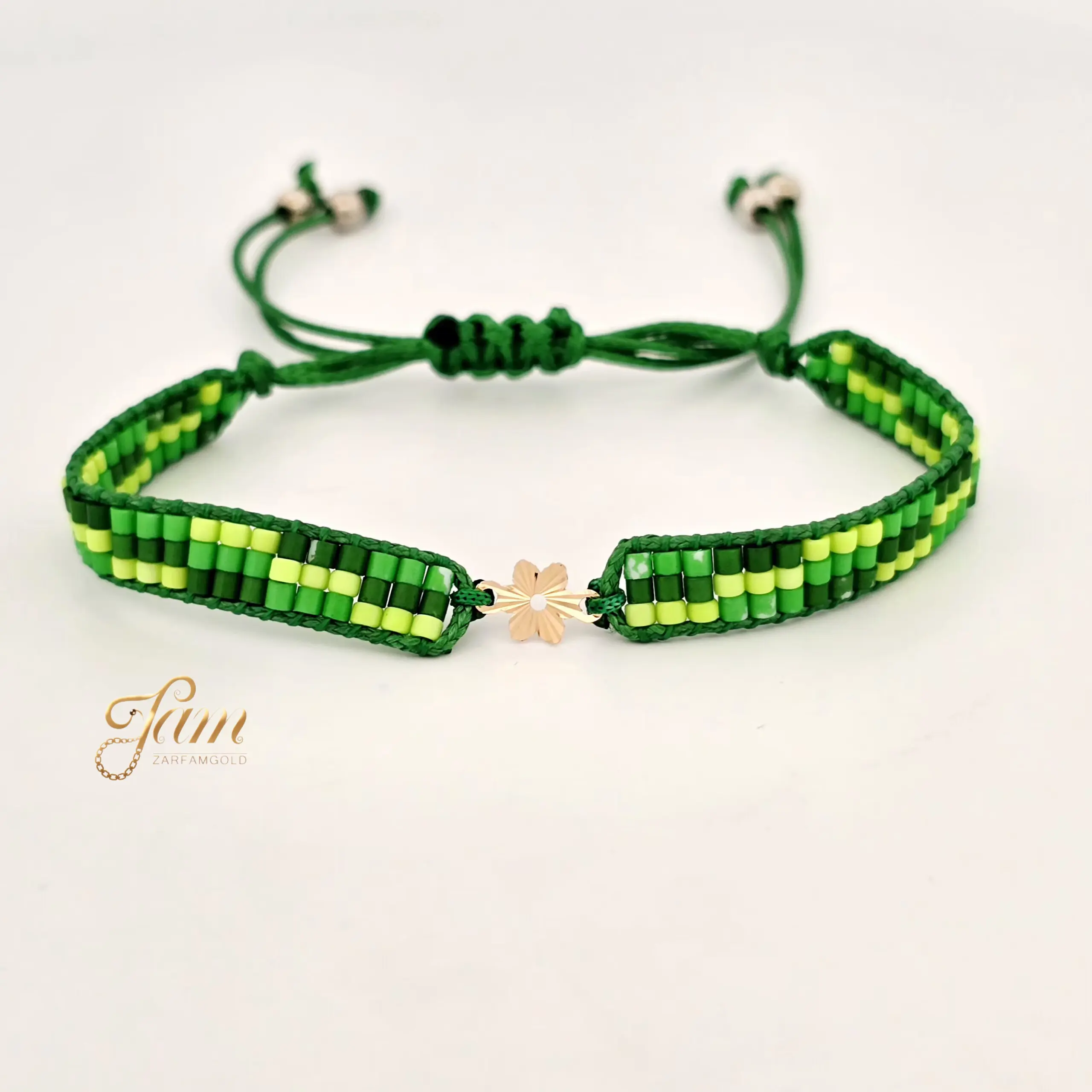 دستبند طلا لوزی تراش با بند سبز کد BL7830