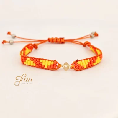 دستبند طلا لوزی تراش با بند زرد و نارنجی کد BL7826