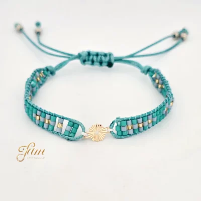 دستبند طلا گل تراش با بند میوکی آبی کد BL7832