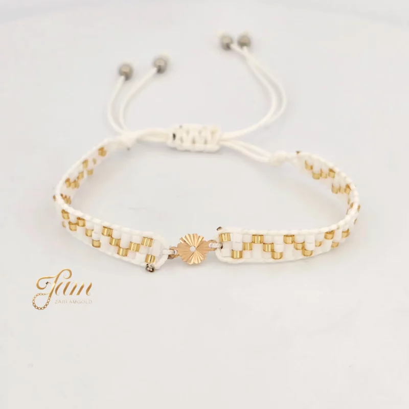 دستبند طلا گل تراش با بند سفید طلایی کد BL7829