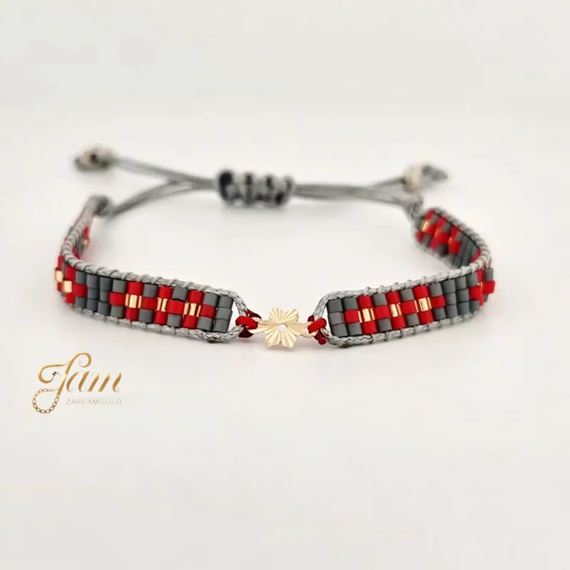 دستبند طلا گل تراش با بند طوسی و قرمز کد BL7836