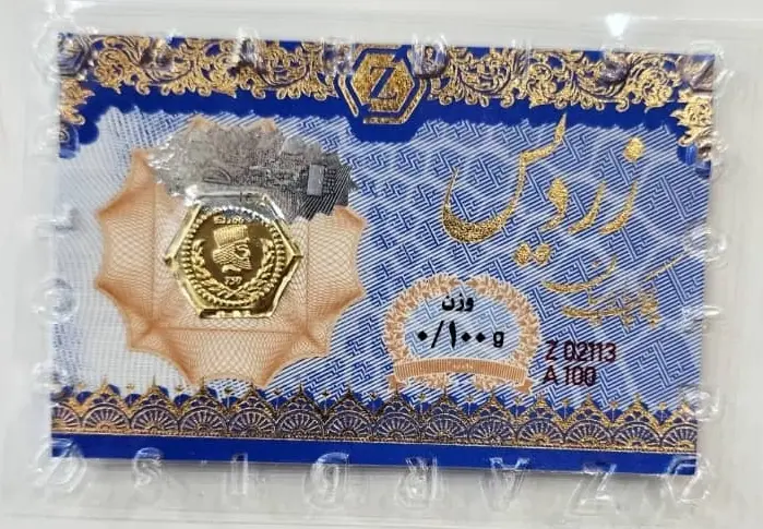 سکه طلا پارسیان زردیس 100 سوتی با کاغذ اسکناس