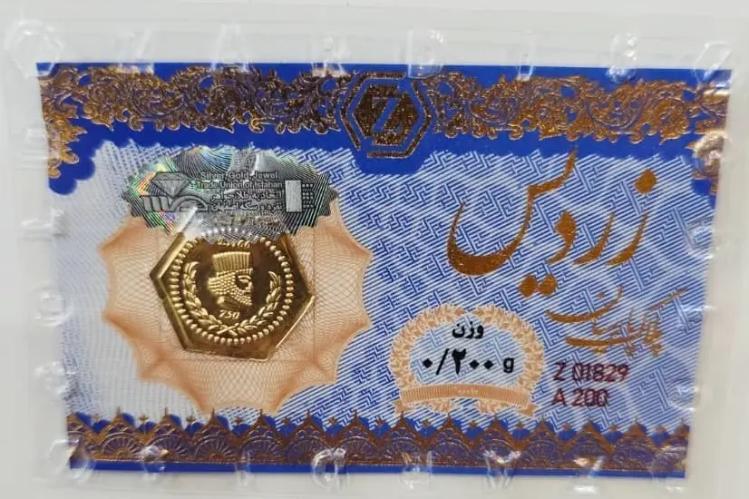سکه طلا پارسیان زردیس 200 سوتی با کاغذ اسکناس