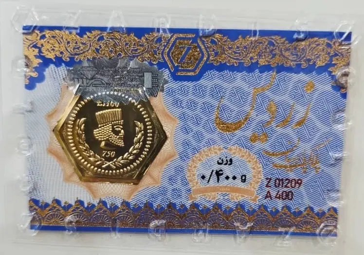 سکه طلا پارسیان زردیس 400 سوتی با کاغذ اسکناس