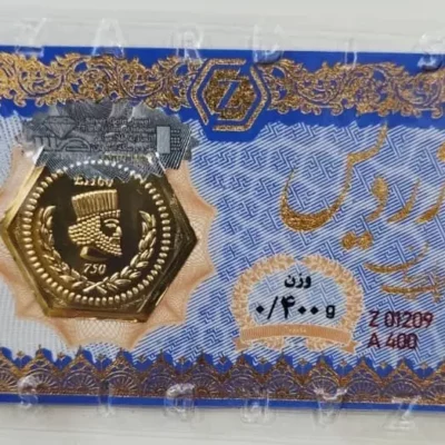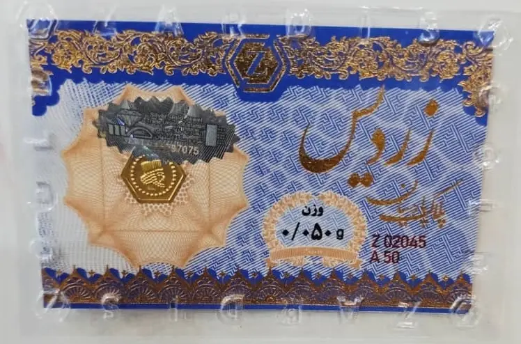 سکه طلا پارسیان زردیس 50 سوتی با کاغذ اسکناس