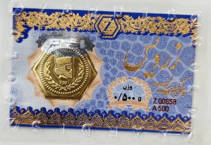 سکه طلا پارسیان زردیس 500 سوتی با کاغذ اسکناس