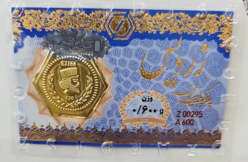 سکه طلا پارسیان زردیس 600 سوتی با کاغذ اسکناس