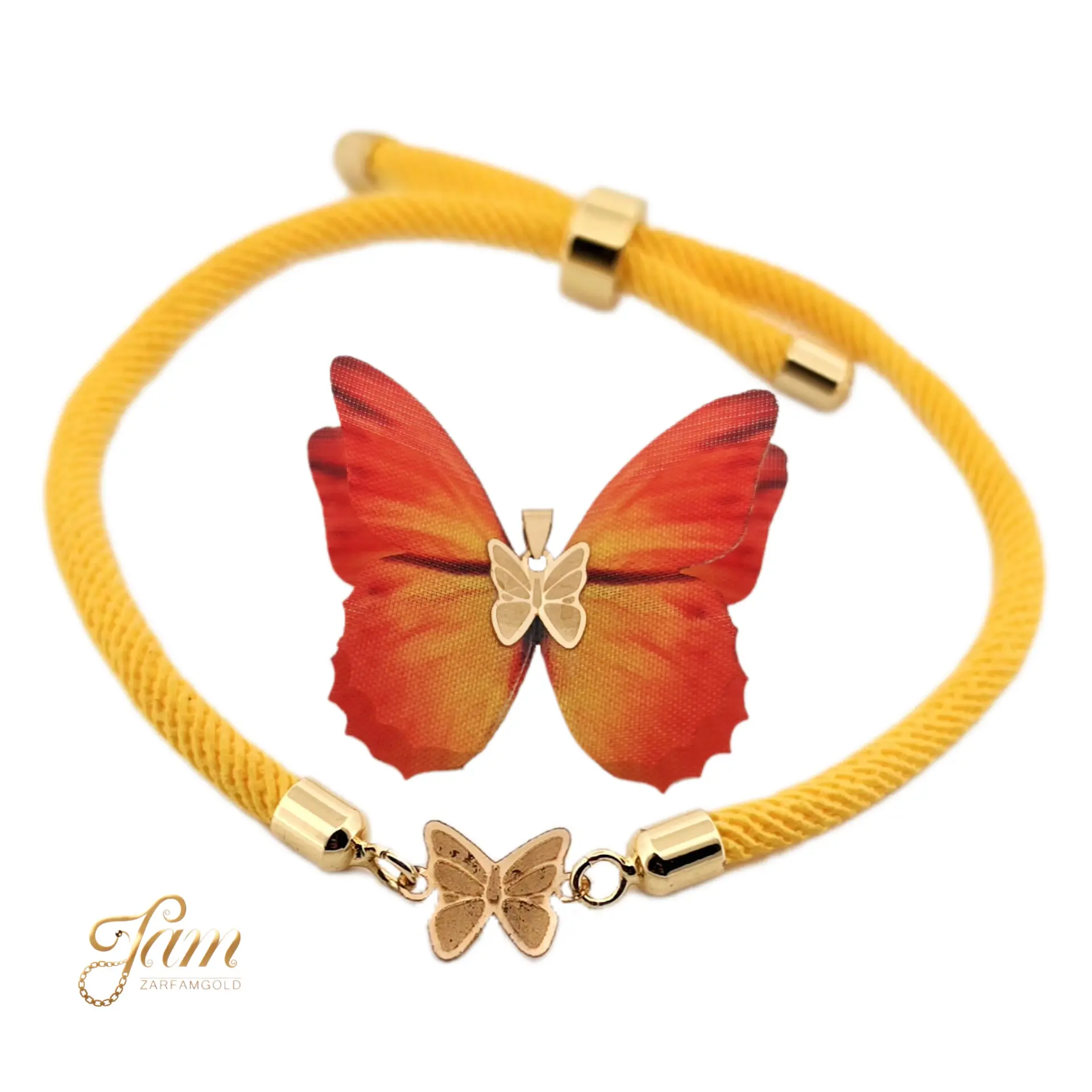 نیم ست طلا دستبند و گردنبند پروانه زرد و نارنجی کد NB7297