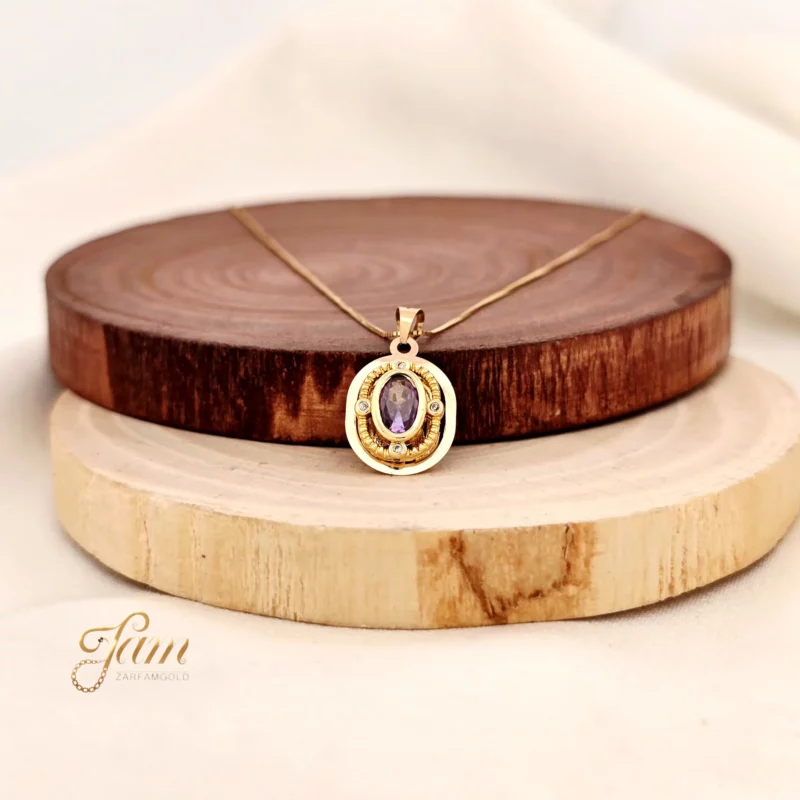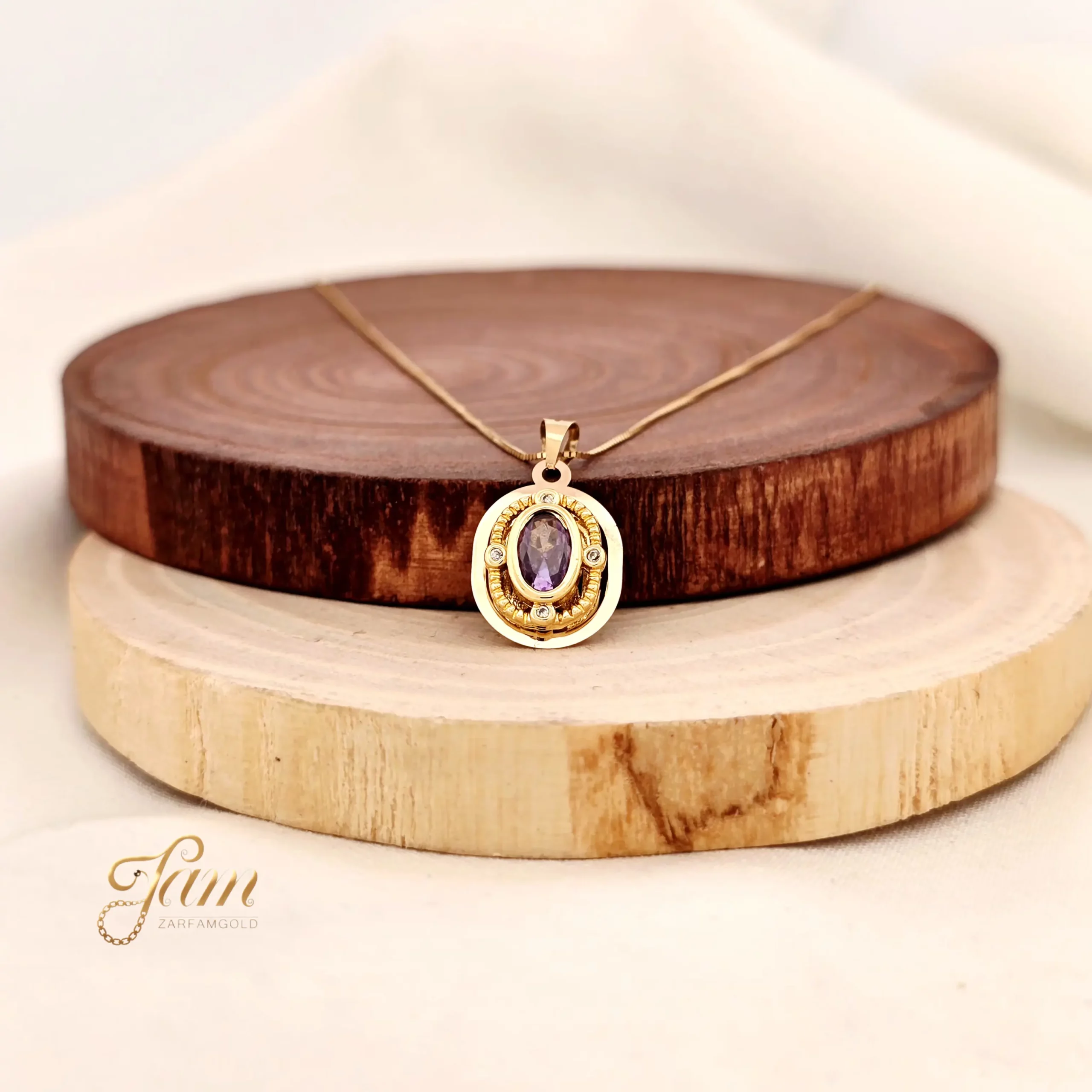 پلاک طلا تک نگین ظریف بنفش کد P7803