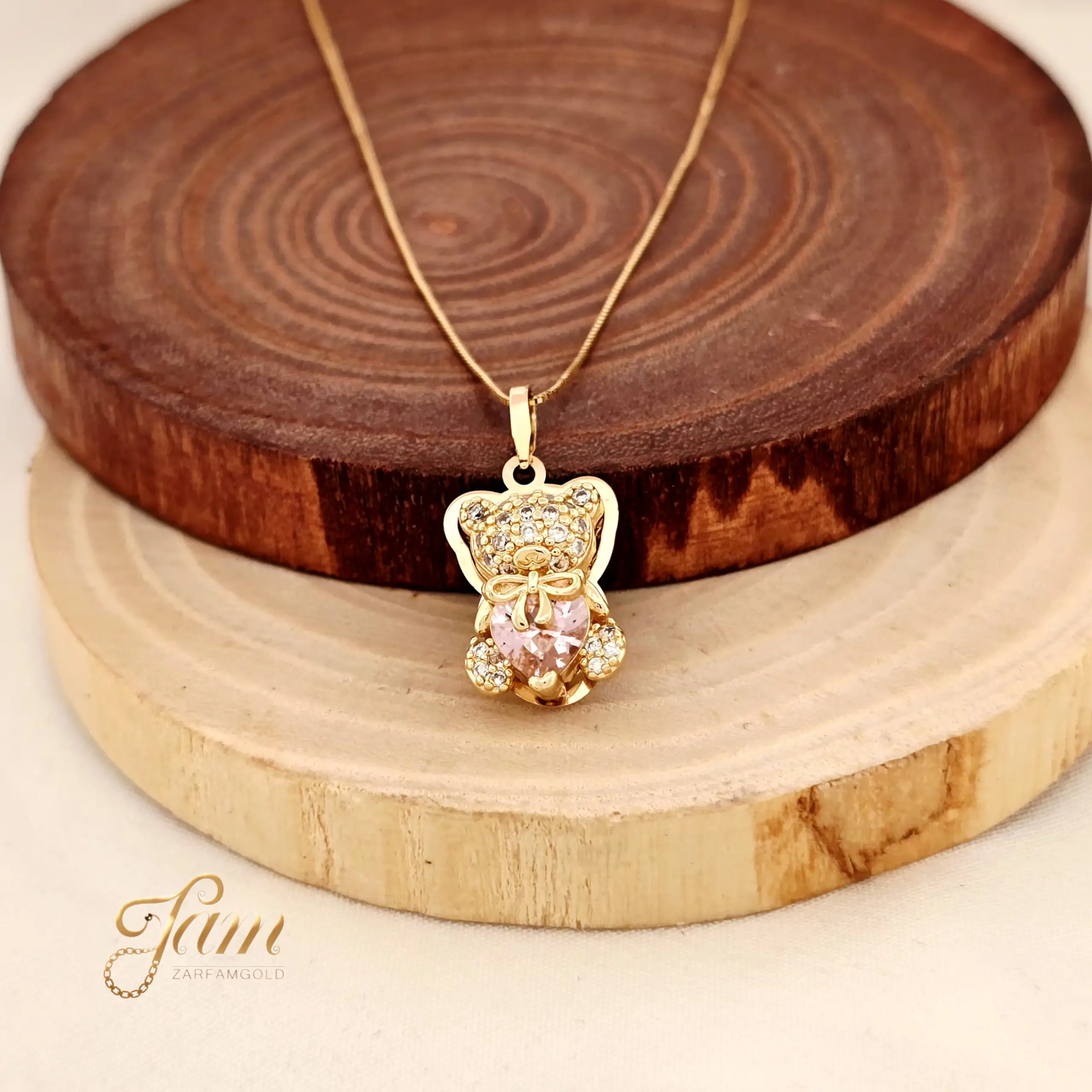پلاک طلا خرس نگین سفید صورتی سواروسکی کد P7811