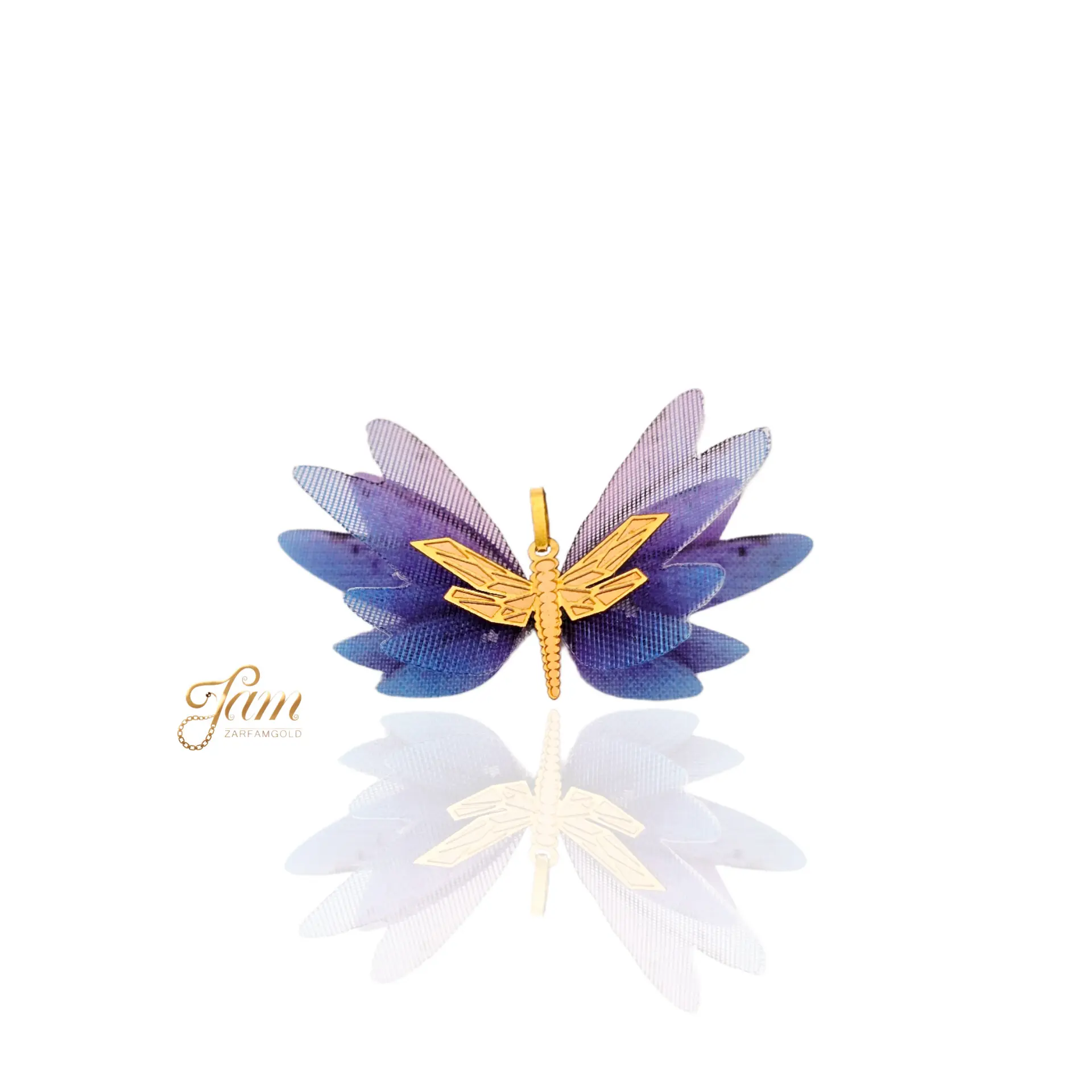 پلاک طلا سنجاقک پارچه ای با رنگ بنفش و کاربنی کد P6751