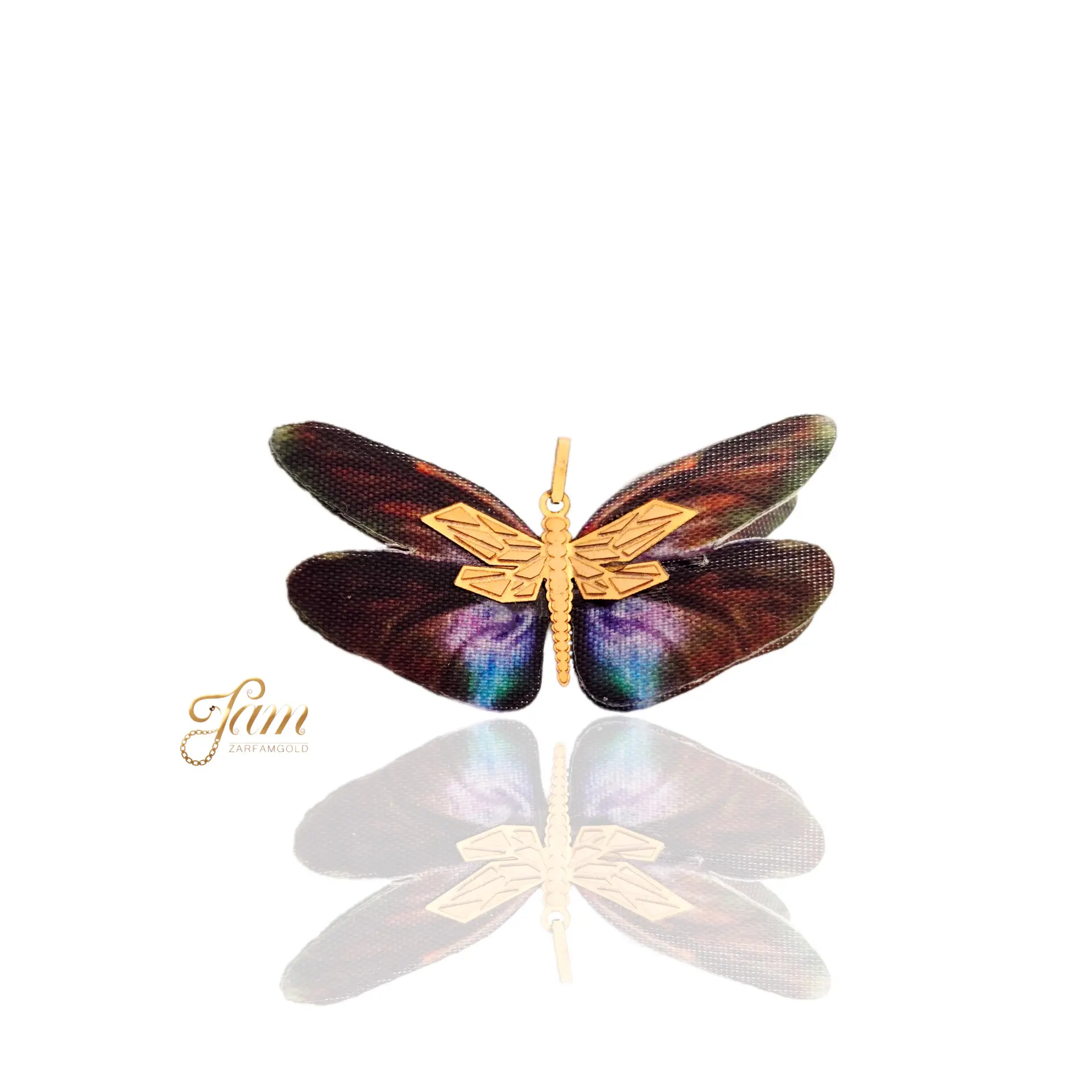 پلاک طلا سنجاقک پارچه ای با رنگ بنفش و کاربنی کد P6751