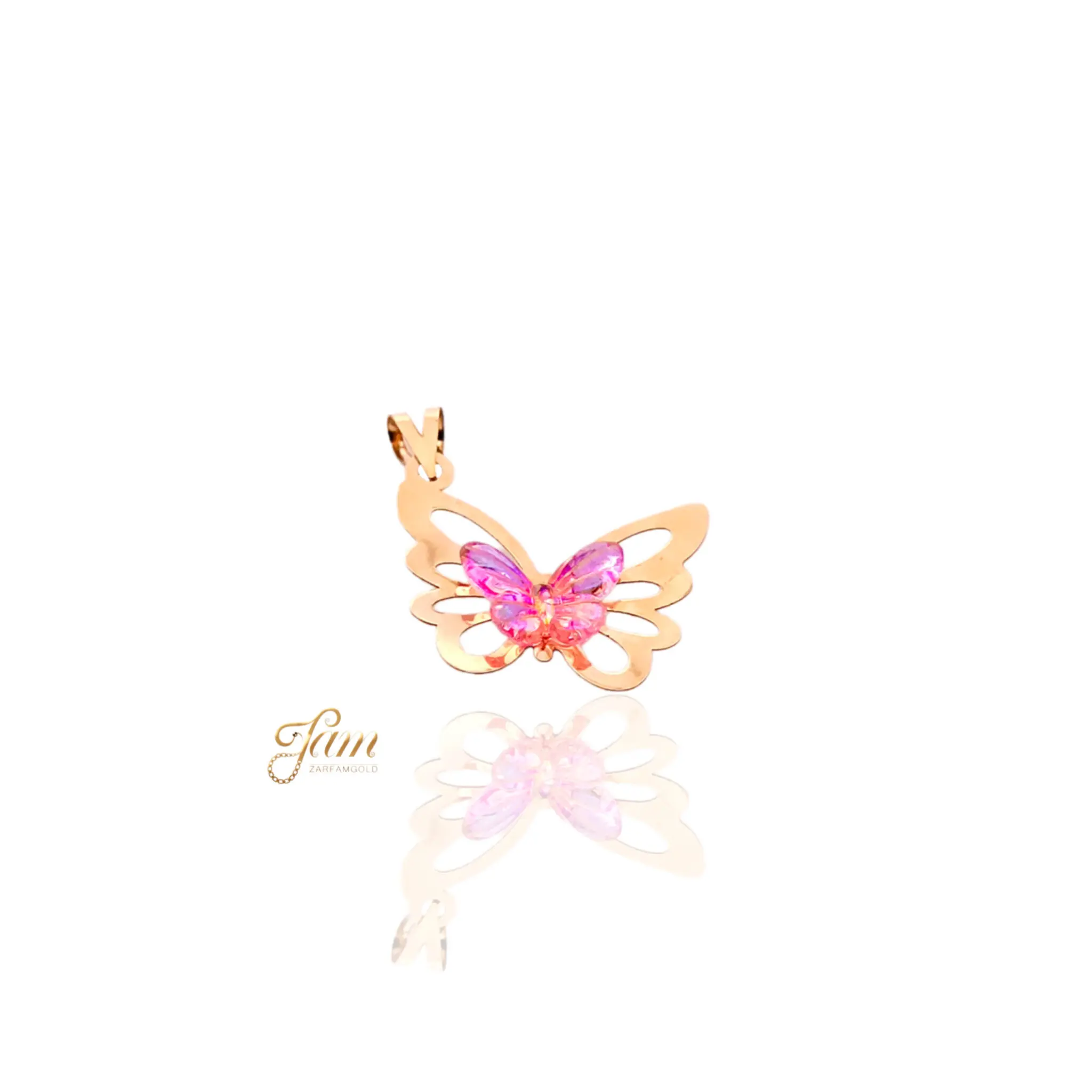 پلاک طلا شاپرک هفت رنگ صورتی سواروسکی کد P6808