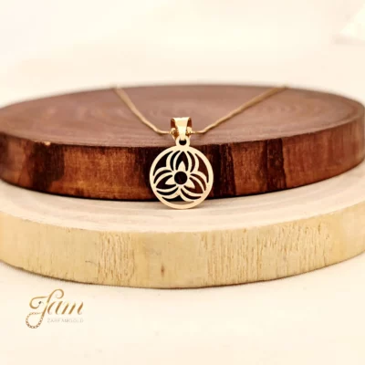 پلاک طلا لیزری گل سه پر در دایره کد P7676