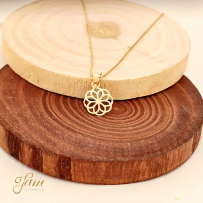 پلاک طلا لیزری گل سه پر در دایره کد P7676