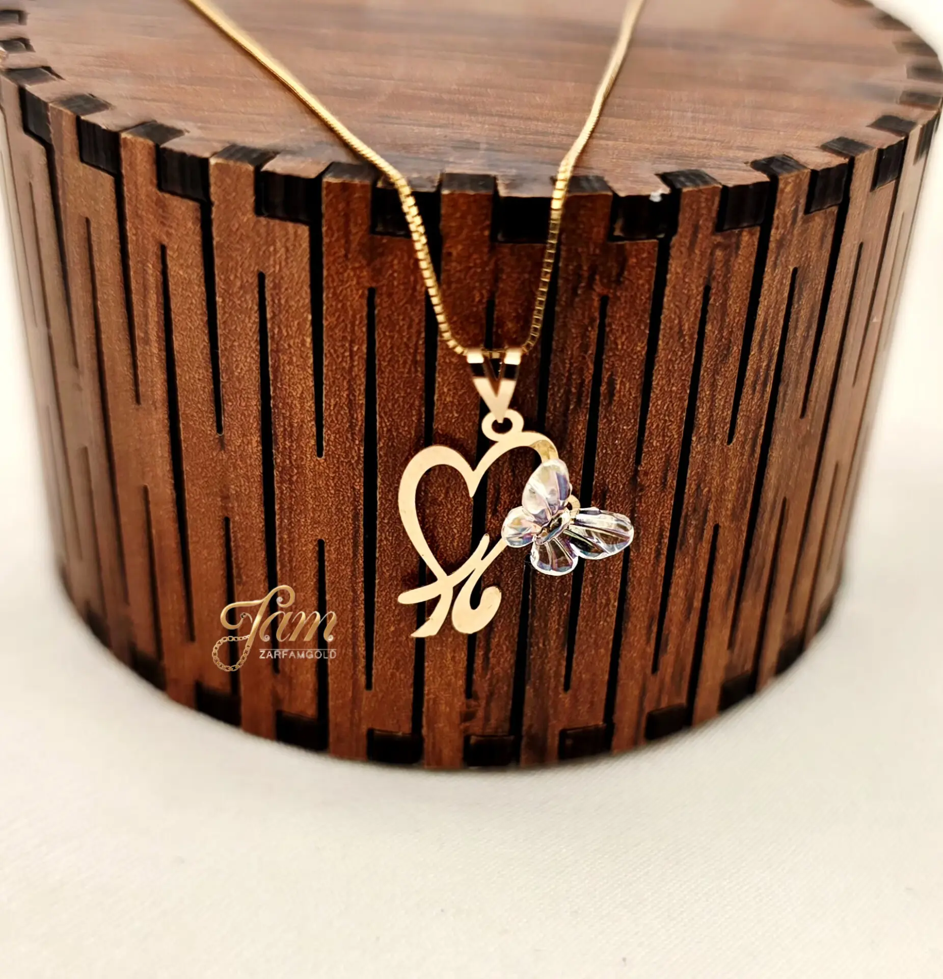 پلاک طلا مادر قلبی پروانه رنگی سواروسکی P7141