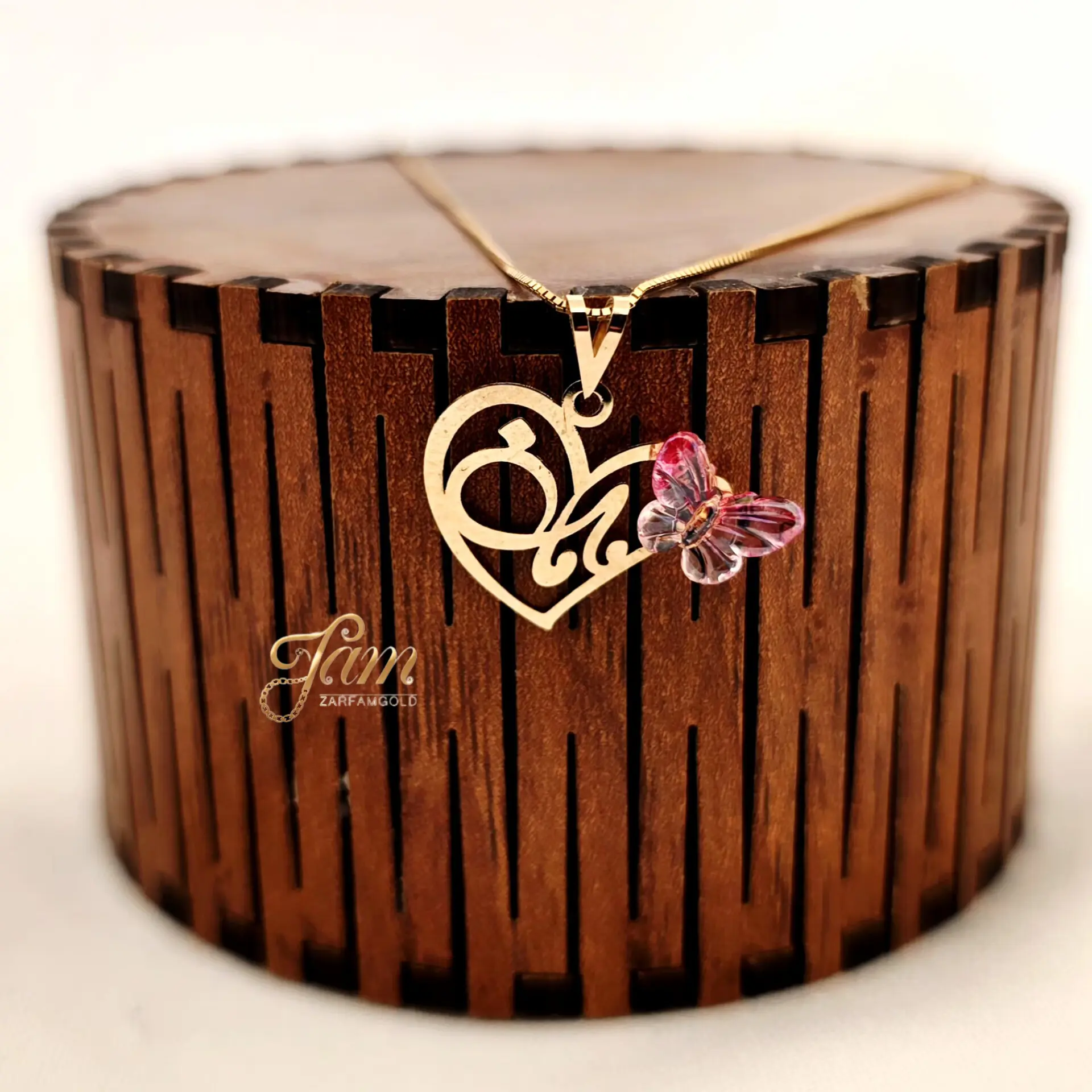 پلاک طلا مادر قلبی پروانه رنگی سواروسکی P7141
