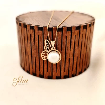 پلاک طلا مروارید سواروسکی پروانه کد P7872