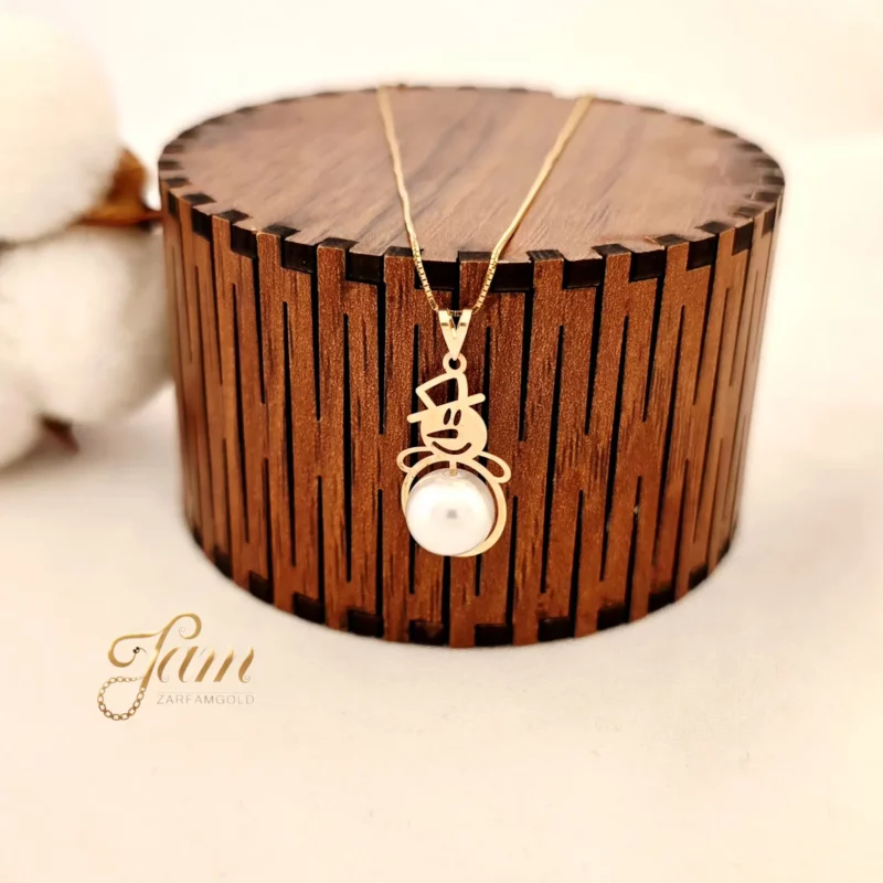 پلاک طلا مروارید سواروسکی آدم برفی کد P7871